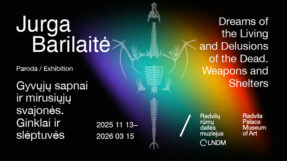 Dreams of the Living and Delusions of the Dead. Weapons and Shelters is Jurga Barilaitė’s first solo exhibition at the Lithuanian National Museum of Art. In curating it, I experienced how closely struggle and creation intertwine, and how endless every woman artist’s necessary defence truly is. Even when the air trembles with anxiety, I feel safe in Jurga’s shelter. Here, there is someone fighting for us, guarding the alphabet day and night—even when only a dream remains of the living, and only the dead are still capable of dreaming.