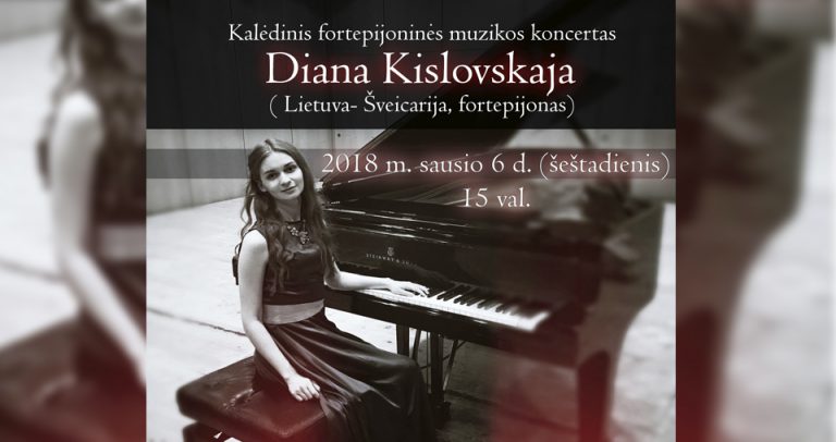 Kalėdinis fortepijoninės muzikos koncertas 2018 m. sausio 6 d., šeštadienį, 15 val. (Adresas: A. Goštauto g. 1, Vilnius) Dalyvauja: Diana Kislovskaja (Lietuva–Šveicarija, fortepijonas) Programoje: R. Schumann, A. Scriabin, C. Debussy, M. Ravel kūriniai. Įėjimas nemokamas.