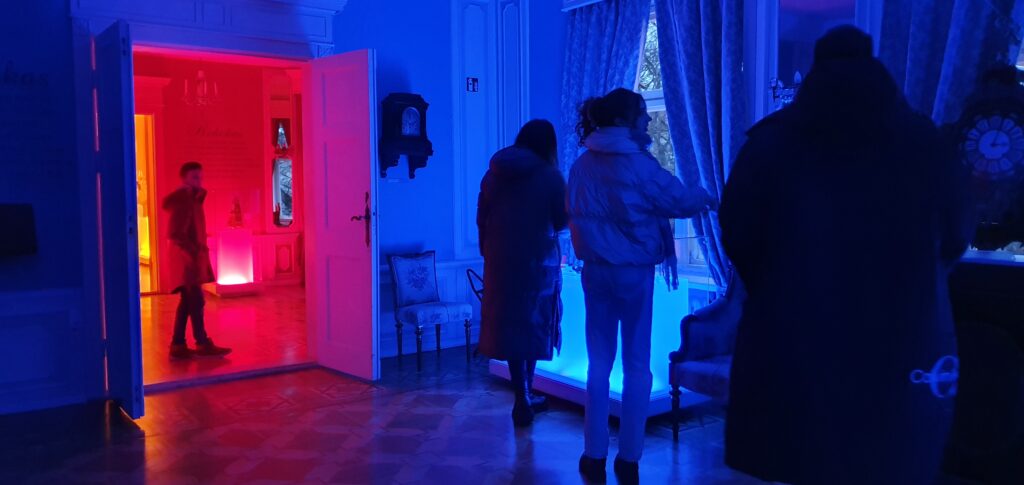 Lankytojai kviečiami užsukti ir į šalia muziejaus esančius du apšviestus kiemelius, kuriuose bus galima pamatyti ir išgirsti Laikrodžių muziejaus pastato bei jame gyvenusių žmonių, XIX–XX a. kūrusių Klaipėdos istoriją, pasakojimus.