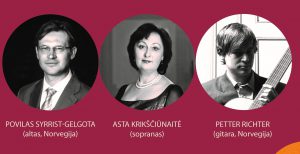 Programoje – G. Caccini, E. Grieg, K. Marcussen, E. Gismonti kūriniai. Bilietas – 10 eur. Bilietus galima įsigyti visose sistemos Bileitai.lt pardavimo vietoje ir internetu. Valandą prieš koncertą bilietus galima įsigyti Taikomosios dailės ir dizaino muziejuje.